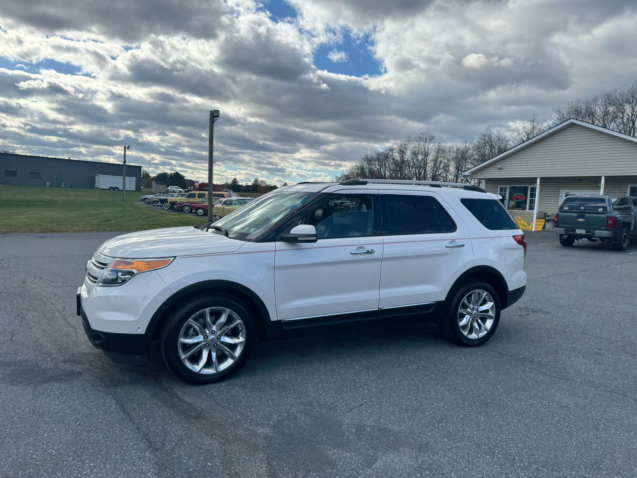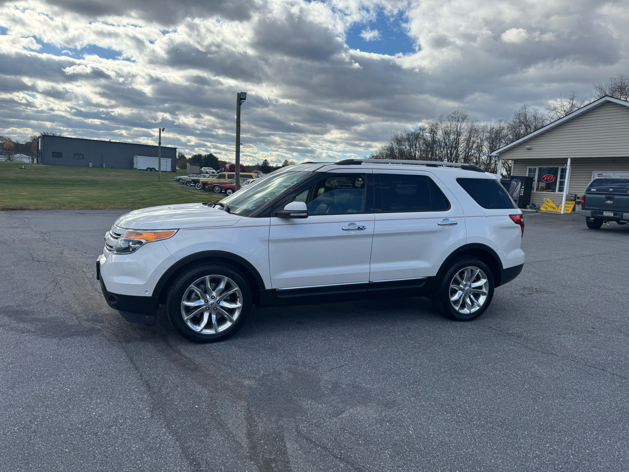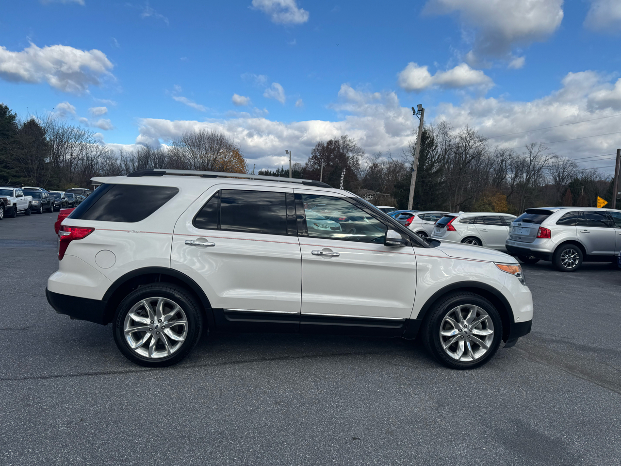 ***LIMITED*** This beautiful 2013 Ford Explorer Limited is a must see! It is equipped with a 3.5 liter V6 engine and an automatic transmission. It has sunroof, roof rack and alloy wheels. The heated seat and steering wheel are a bonus heading into the cold weather. The white exterior and black leather interior are in excellent condition. Well maintained both inside and out. Inspection and emissions, good thru October of 2026. It comes with a 3 month / 4,000 miles (whichever occurs first) powertrain warranty. Ask a salesman for more details. Free Carfax report is available. Hurry in and take this beauty for a test drive today!